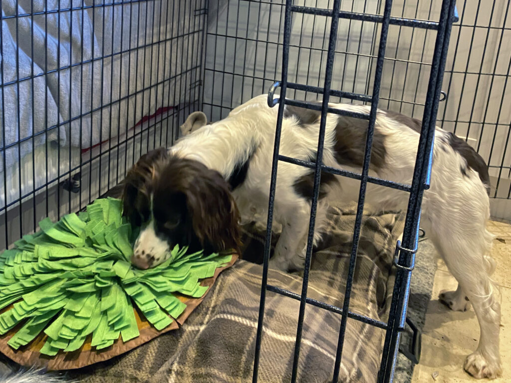 - Make the crate as comfortable as possible – it can help to place it where your dog usually sleeps.